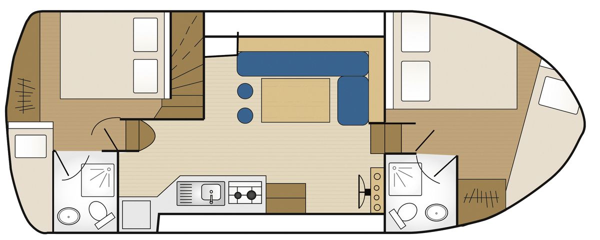 - 2 Kabinen, je mit Doppel- und Kinderbett.
