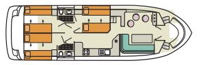 - 3 Kabinen, je mit 2 Einzelbetten umwandelbar in ein Doppelbett.