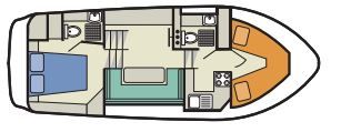• Kabine vorne mit 2 Einzelbetten, Kabine hinten mit Doppelbett.