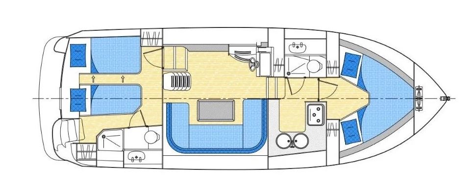 Die gemütlichen, eleganten und wie kleine Yachten konzipierten Europas sind für die Navigation ohne Führerschein gut geeignet und können eine Mannschaft bis 8 Personen aufnehmen. Die Einrichtung entspricht einem Must. Dank des sehr schönen Achterdecks eignen sie sich gut zum Fischen und Baden.