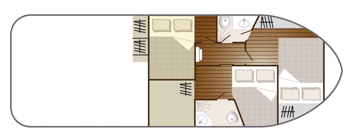 Für Sie reimt Bootsmiete mit Familie, Sippe, Wohnfläche und Vergnügen im Freien. Das Programm «Sedan» bietet genau das, was Sie brauchen! Obwohl diese Boote etwas älter sind, besitzen sie einige wesentliche Vorteile, wie einen wunderschönen Aufenthaltsraum mit Panoramablick und ein direkter Zugang auf die Terrasse. Wegen ihren «Schuhlöffel-Kabinen», die sich teilweise unter dem Salon befinden, sind sie jedoch eher Familien mit Kindern zu empfehlen.