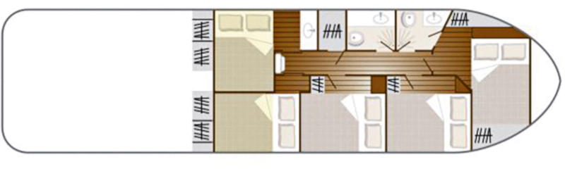 Für Sie reimt Bootsmiete mit Familie, Sippe, Wohnfläche und Vergnügen im Freien. Das Programm «Sedan» bietet genau das, was Sie brauchen! Obwohl diese Boote etwas älter sind, besitzen sie einige wesentliche Vorteile, wie einen wunderschönen Aufenthaltsraum mit Panoramablick und ein direkter Zugang auf die Terrasse. Wegen ihren «Schuhlöffel-Kabinen», die sich teilweise unter dem Salon befinden, sind sie jedoch eher Familien mit Kindern zu empfehlen.