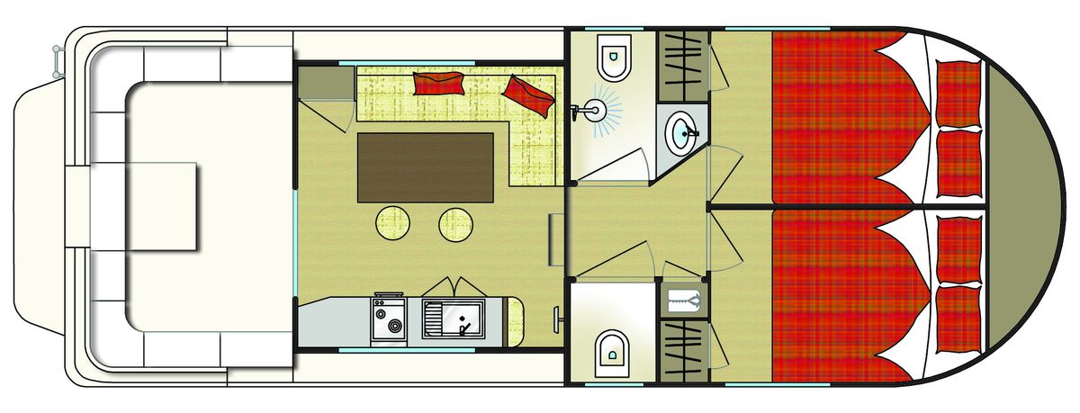 Diese italienischen Boote haben eine sehr funktionelle Innenausstattung, jedoch auf einer begrenzten Nutzfläche: deshalb empfehlen wir sie nicht bei vollständiger Besetzung. Wesentlicher Vorteil: alle haben eine Aussendusche auf dem Achterdeck, nach dem Schwimmen im Salzwasser sehr geschätzt.